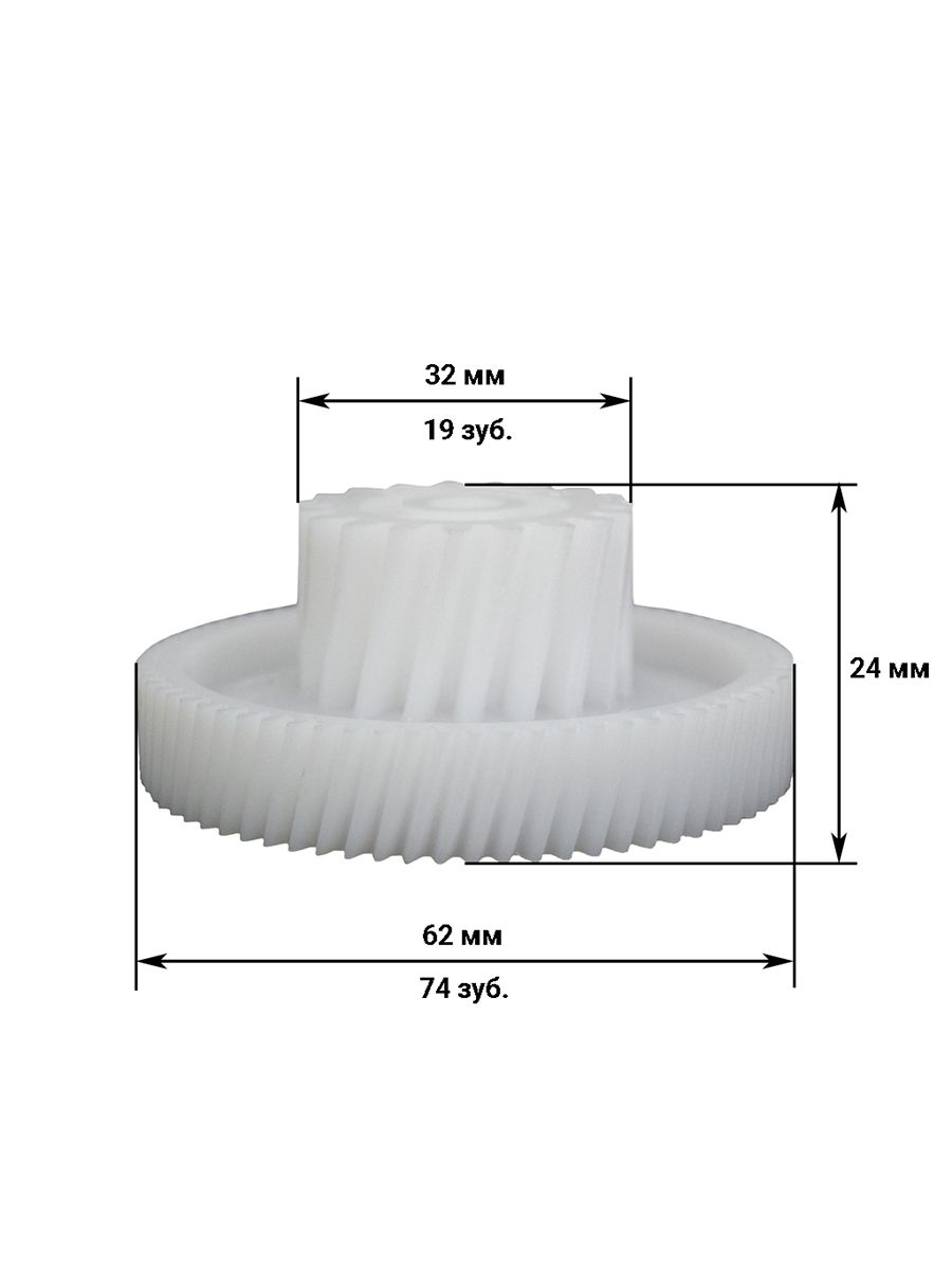 Основные характеристики:Диаметр (малый круг) 32 мм Диаметр (большой круг) 62 мм Количество зубьев (большой круг) 74 шт (косые) Количество зубьев (малый круг) 19 шт (косые) Общая высота 24 мм Производитель Cameron