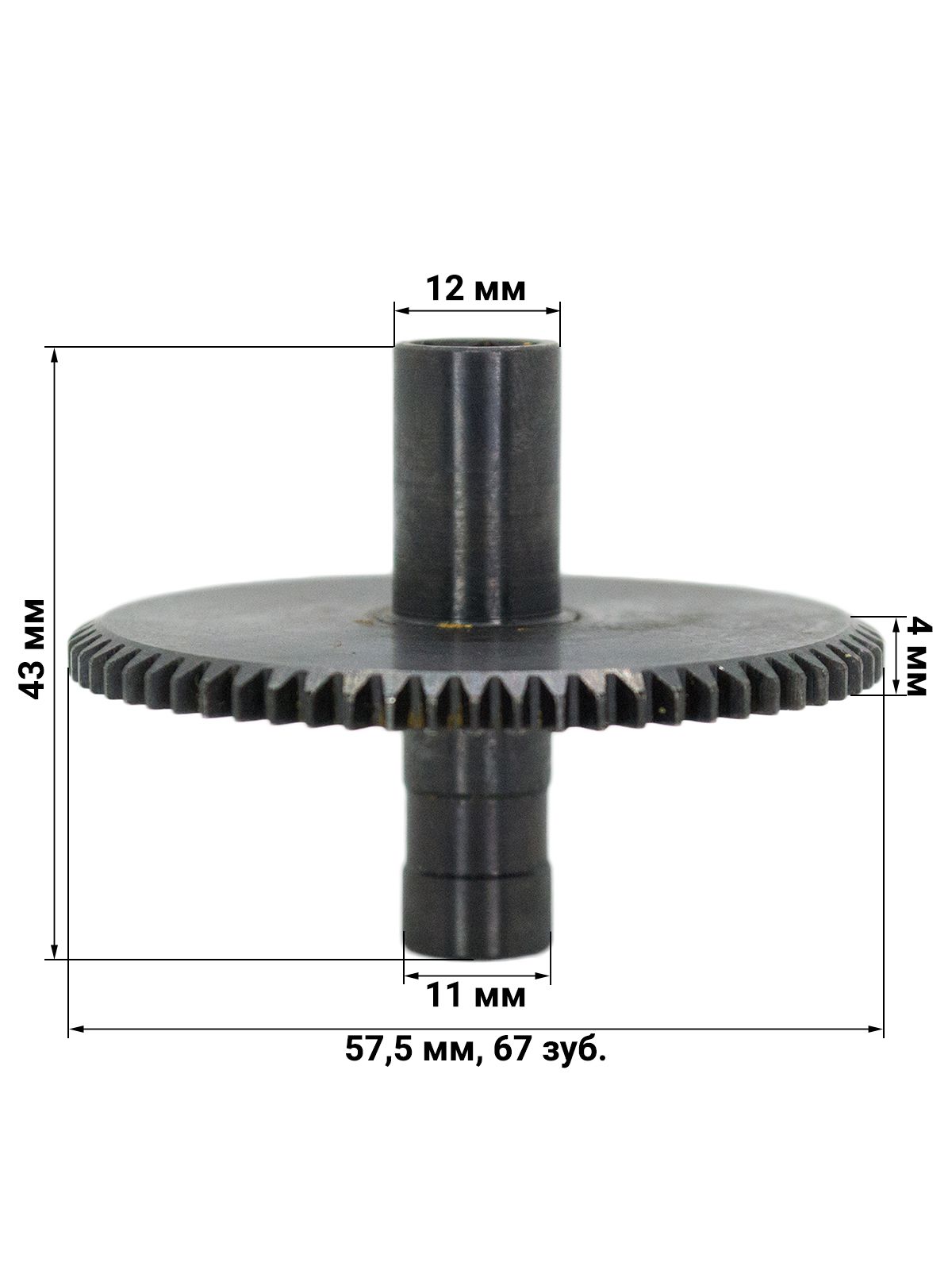 Основные характеристики:Диаметр 57,5 мм Высота 43 мм Количество зубьев по большому кругу 67 шт. Направление зубьев прямой